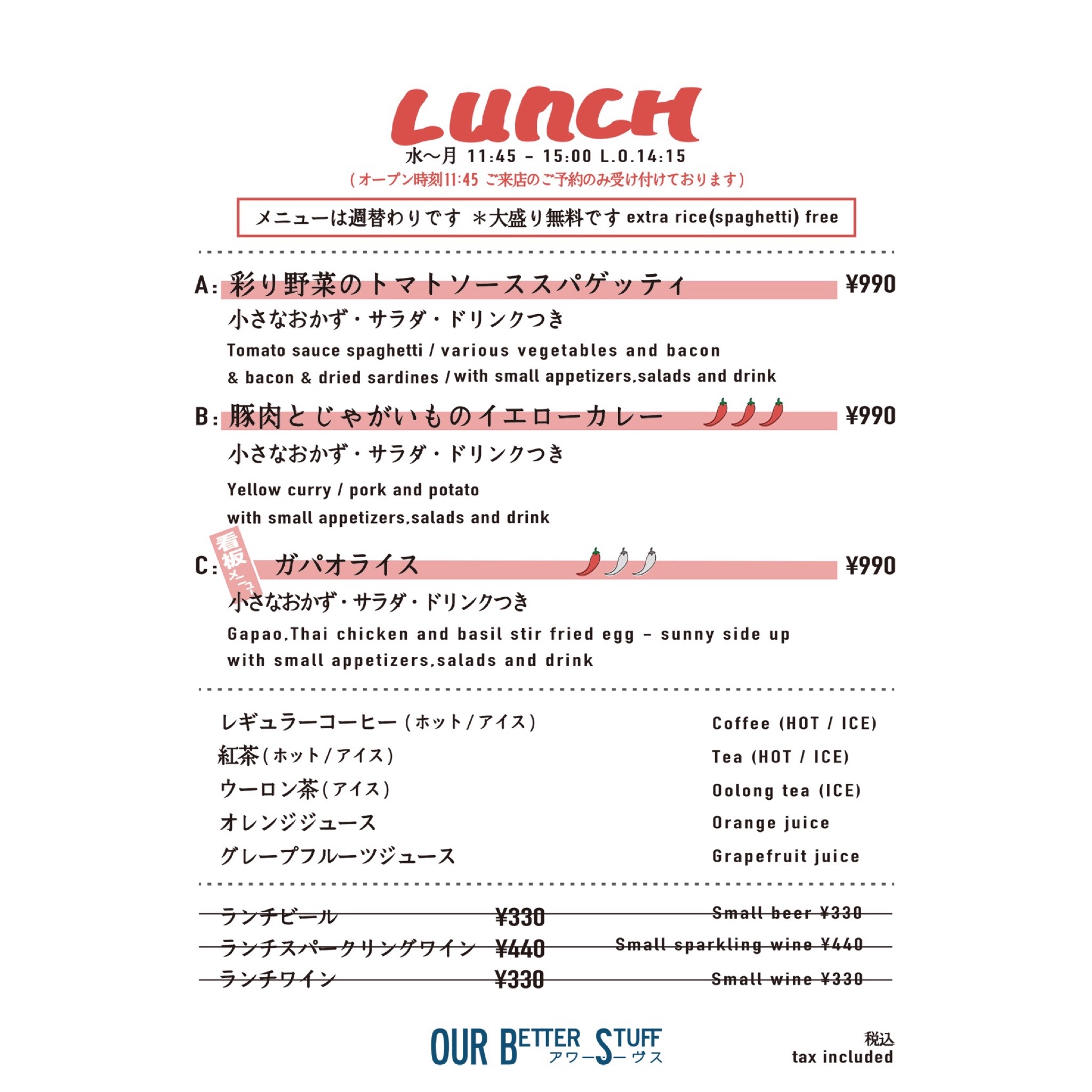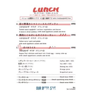 LUNCH 11:30-15:00 L.O.14:30 DINNER 17:30-22:00 CLOSED 火+α
